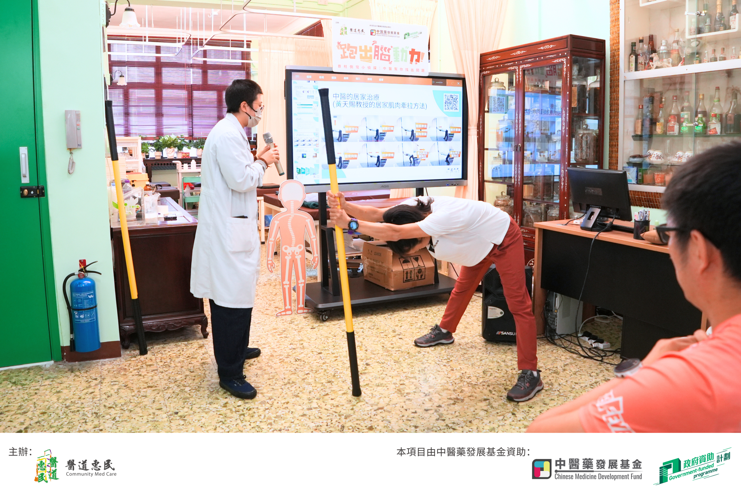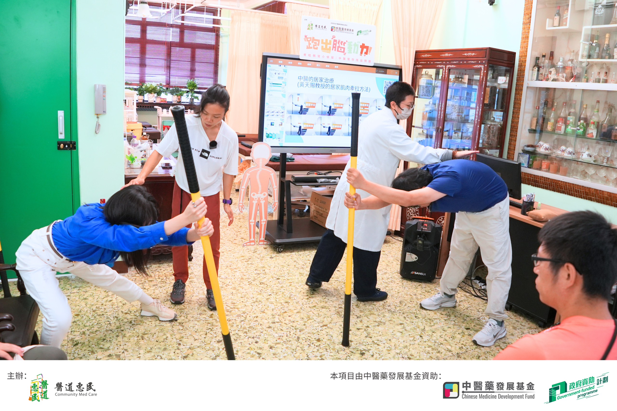 本次活動依舊由中醫師與專業運動員共同帶領,深入淺出地講解脊椎側彎的成因與預防方法,並逐步教導街坊進行自我檢測,學習觀察自身的身體狀態。現場也示範了多種簡單有效的護脊動作,結合輔助工具讓每位參加者親身體驗,讓日常保健既有趣又容易持續。