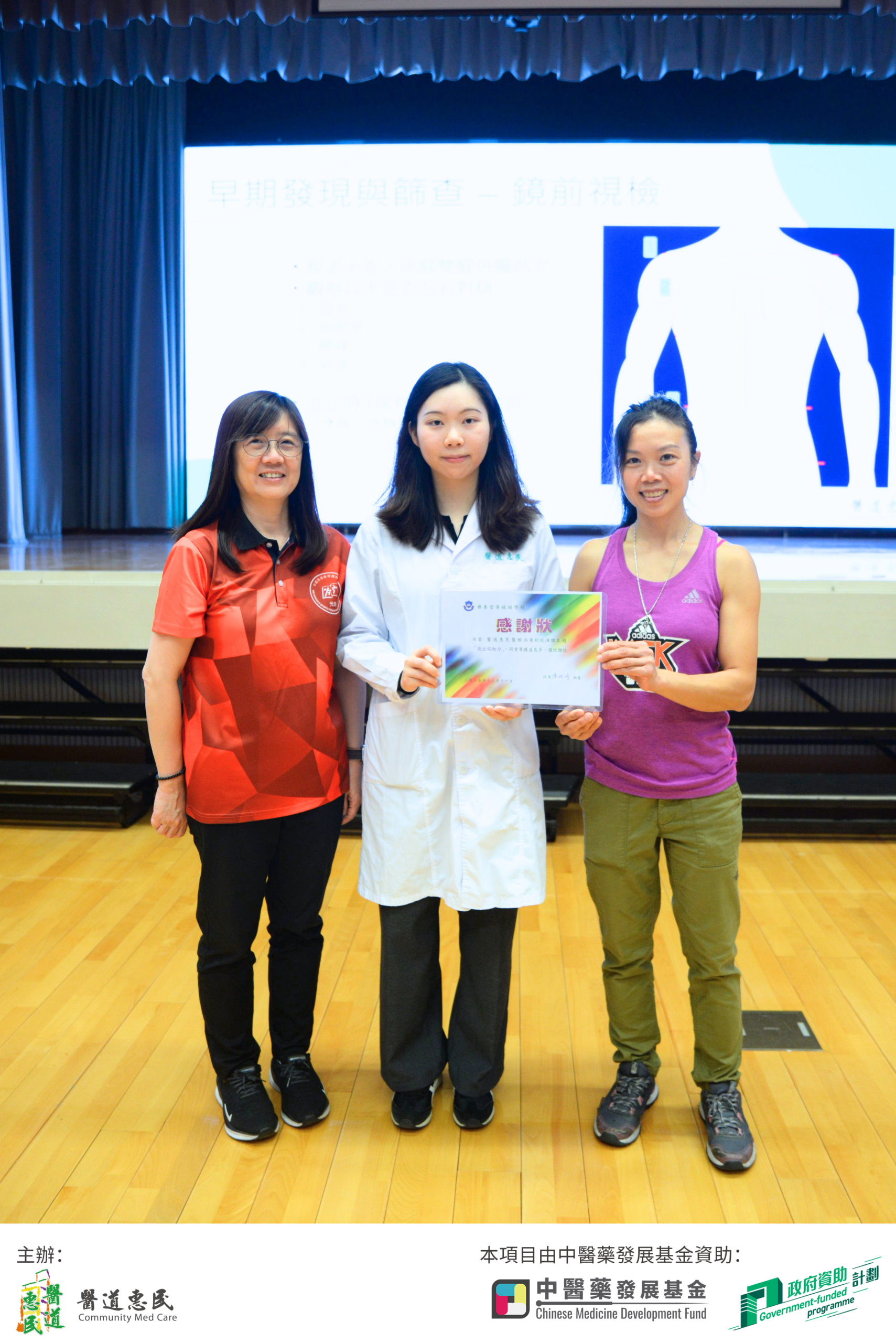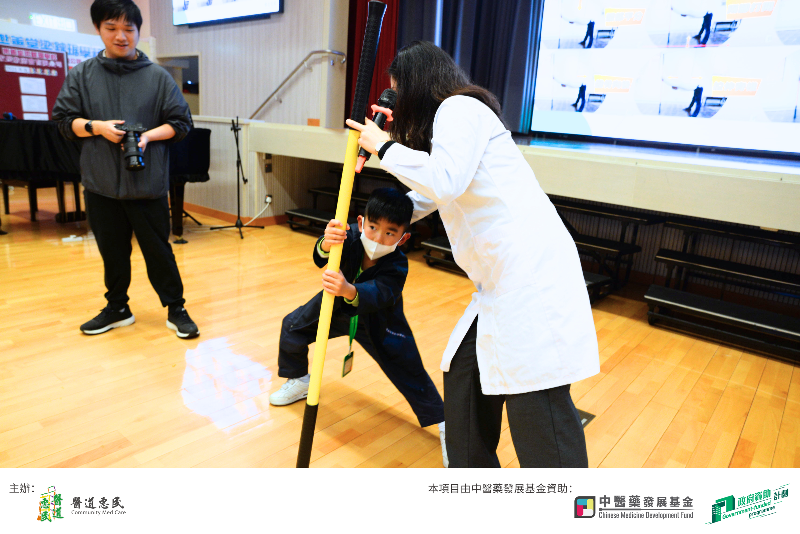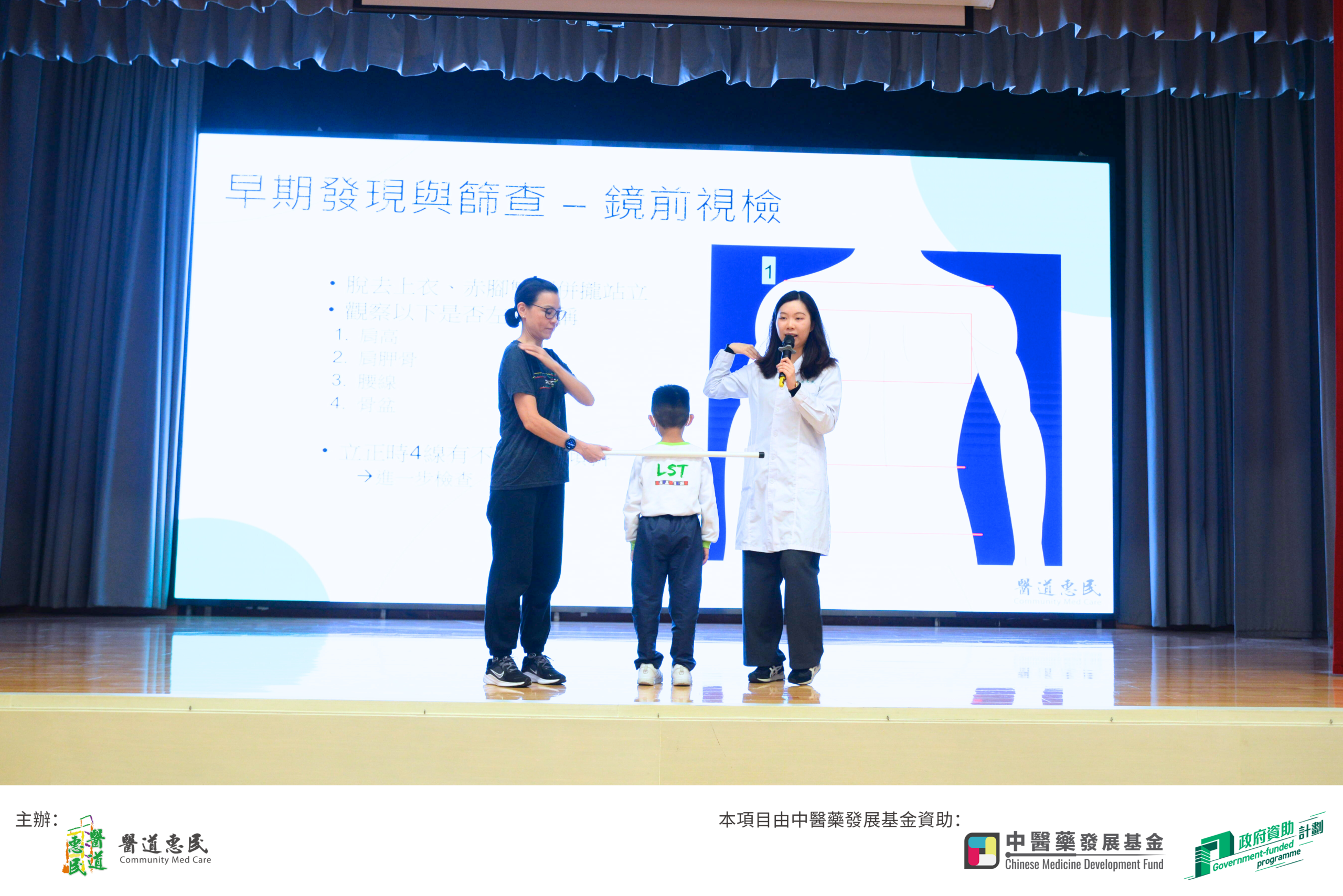 講座中,中醫師與專業運動員以生動的示範與解說,讓同學了解脊椎側彎的成因,並一起練習多個有效又易學的護脊動作。大家不只專注聆聽,更積極參與,現場充滿活力與笑聲。中醫師也為同學進行了脊椎健康評估與彎度量測,讓每個人更清楚自己的身體狀況,並獲得個人化的日常姿勢建議。