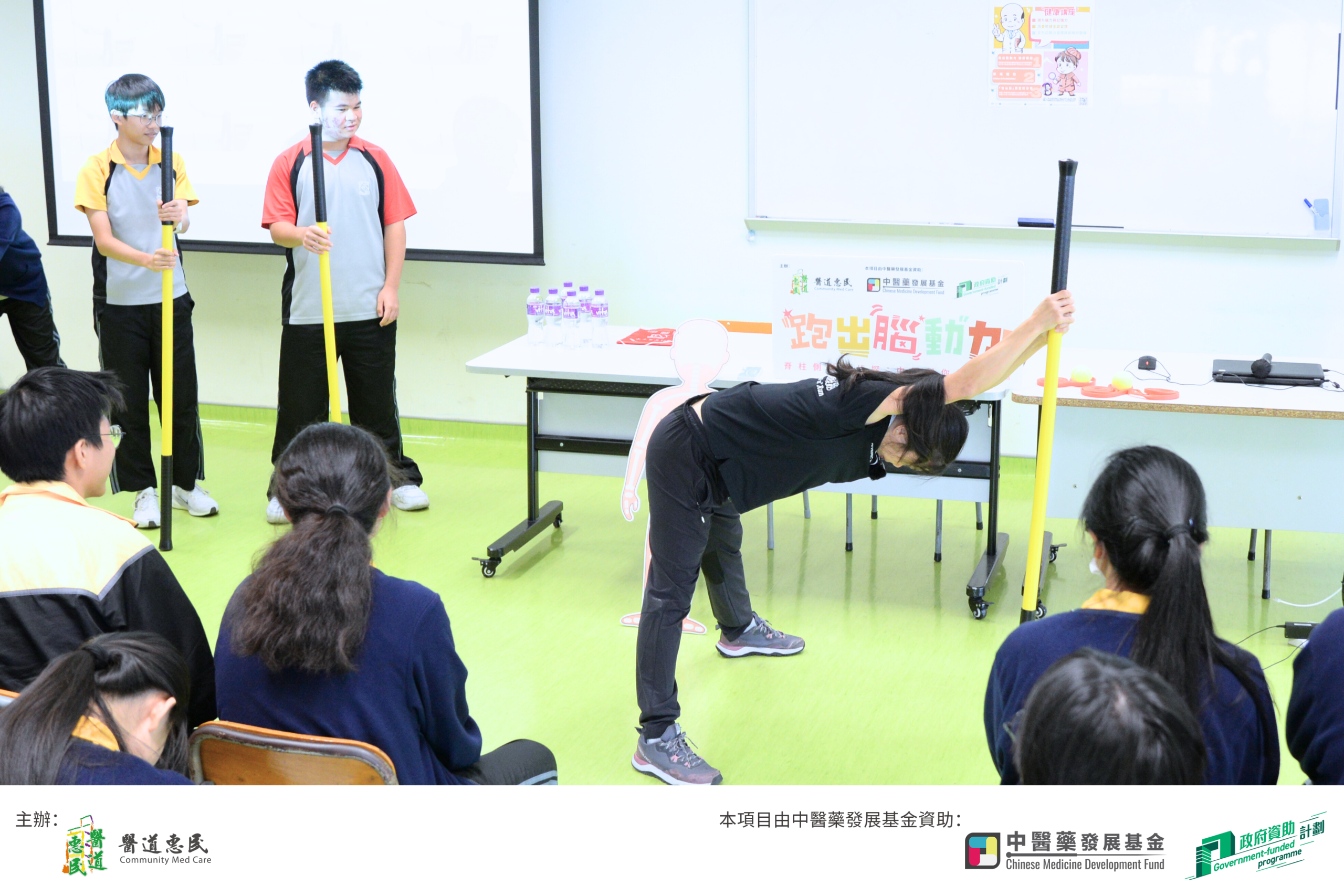 我們希望透過輕鬆、實用的方式,協助同學認識脊柱健康、學習日常護脊技巧,在成長路上更好地預防脊椎側彎。講座中,中醫師與專業運動員聯手,生動解說脊椎側彎的知識,並現場示範多項簡單又有效的護脊運動,讓同學們輕鬆跟著動起來,學會如何主動保護自己的脊椎。