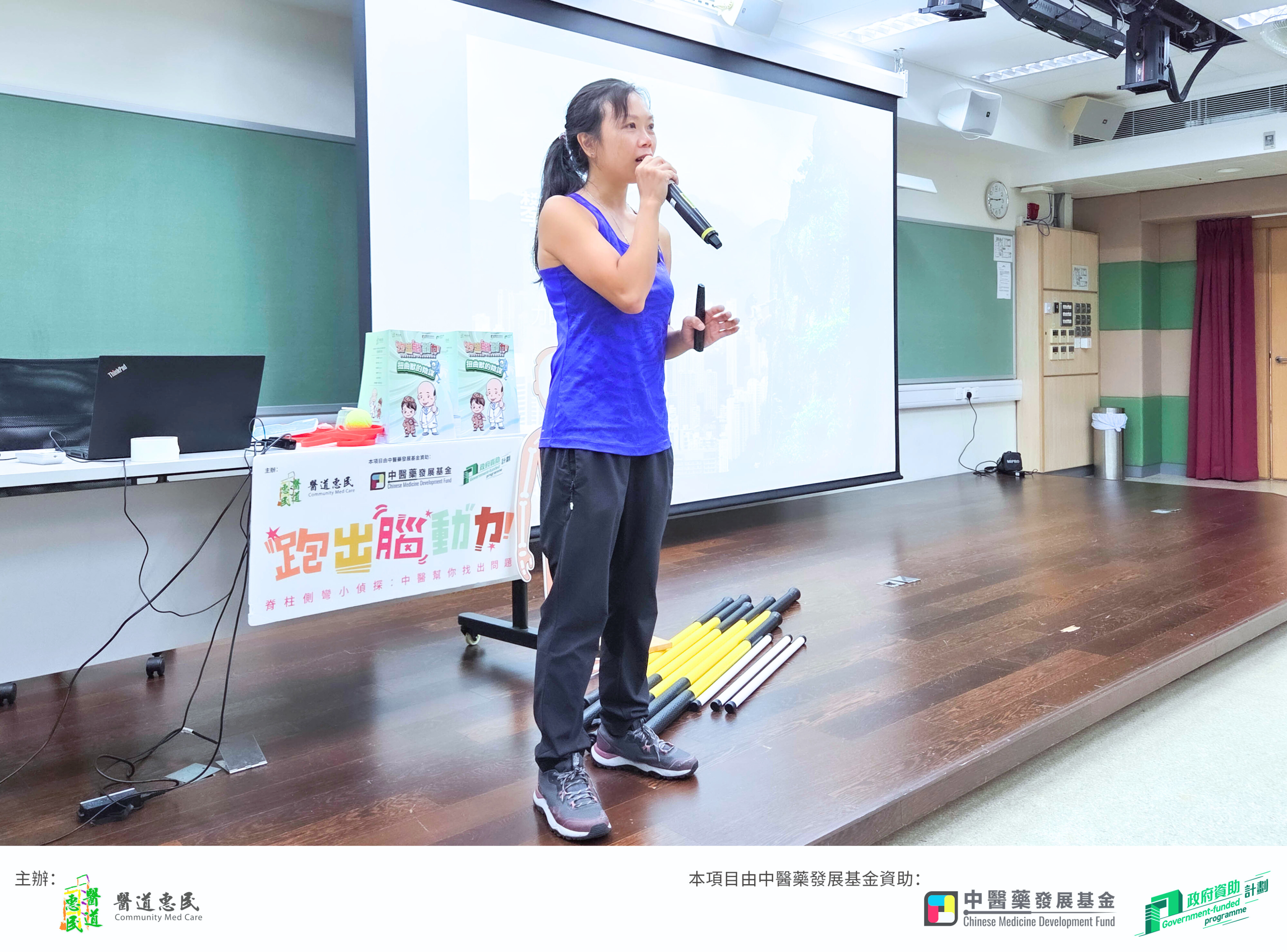 我們的中醫師與專業運動員聯手,為大家講解脊椎側彎的相關知識與預防方法,吸引許多同學踴躍參與,現場充滿學習脊椎知識的熱情。講座中,我們帶著同學一步步學習自我檢測的小技巧,幫助大家更了解自己的脊柱狀態。同時也透過現場示範與互動練習,教導幾個簡單有效的護脊動作,並搭配輔助工具實際操作,讓每位同學都能輕鬆掌握、回家也能持續練習。